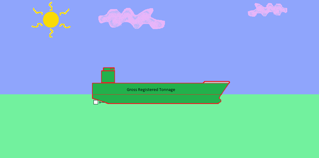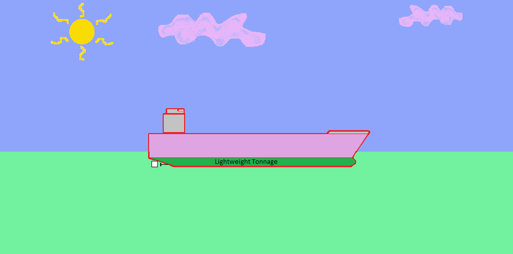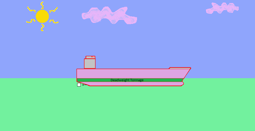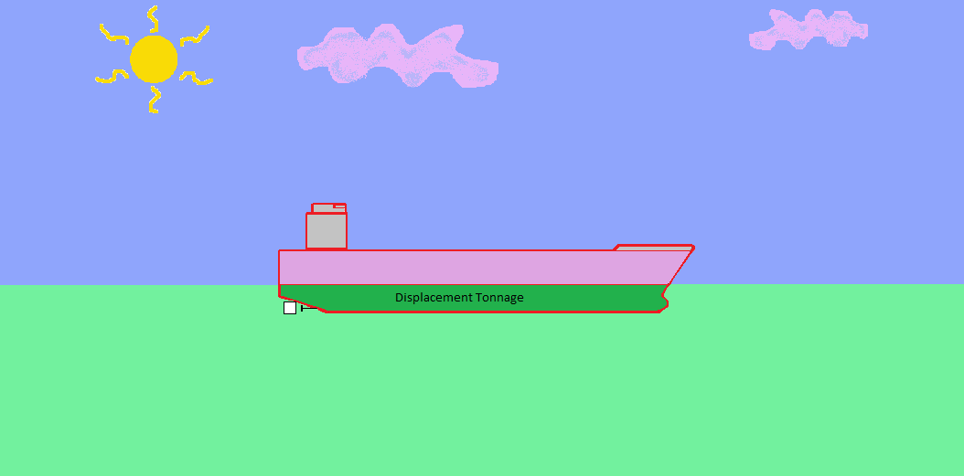 Displacement tonnage is used to define the size of the ship; it refers to the weight of the volume of water displaced by the vessel. If you put yourself in a full bathtub, some of the water inside the tub will spill out on the floor. The weight of the spilled water is equal to the displacement (weight) of the object that took its place in the tub; your body! To determine displacement they start by reading off the draught marks on the vessel. Next, they put the measurements into the ship’s hydrostatic tables that show the displaced volume of water. It is also necessary to know the water’s density to calculate the weight; the density varies with temperature, and seawater is denser than fresh water.