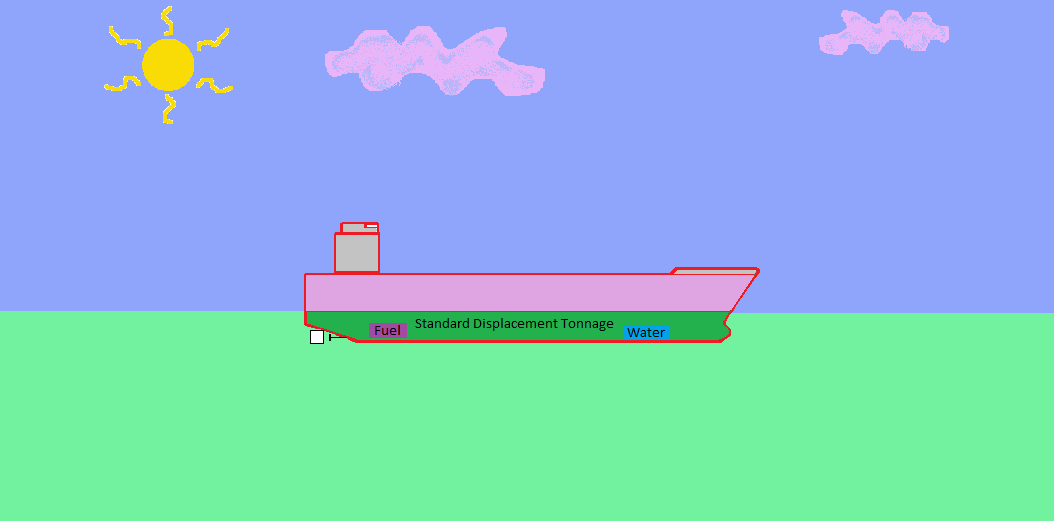 Standard displacement tonnage is displacement tonnage minus the weight of any fuel and potable water carried on board the ship.