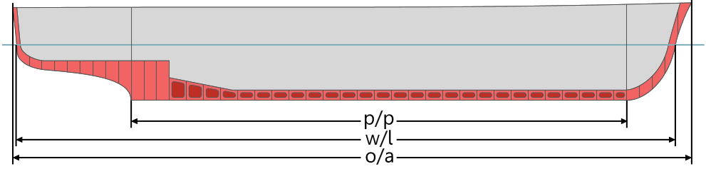 - Length at Waterline (LWL) is the ship's length measured at the waterline