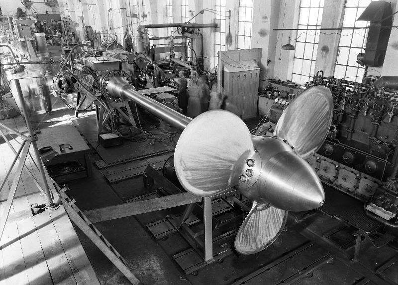 Much of the work done in most shipyards those days had to do with fishing, which made them vulnerable for the whims of nature. From about 1927 to 1939, the fishery for cod almost halved, leaving the investment appetite low among those buying services from Liaaen. Nils put his mind to finding other sources of work and ended up with a rather profitable production of mechanically driven trawl winches. The visionary Nils J. Liaaen also saw the need for diesel engines on board fishing ships if they were to sail all the way to the fishing grounds in the areas around Iceland and Greenland without having to refuel. In 1938 A.M.Liaaen could proudly mount the first Norwegian constructed and produced two-stroke diesel engine in MS Aalesund; which also was built at Liaaen shipyard. Unfortunately, the production of two-stroke diesel engines only lasted up until right after World War II when the government allowed the import of cheaper, foreign engines. New ideas had to be thought, and the always-inventive Nils set his mind on propellers.