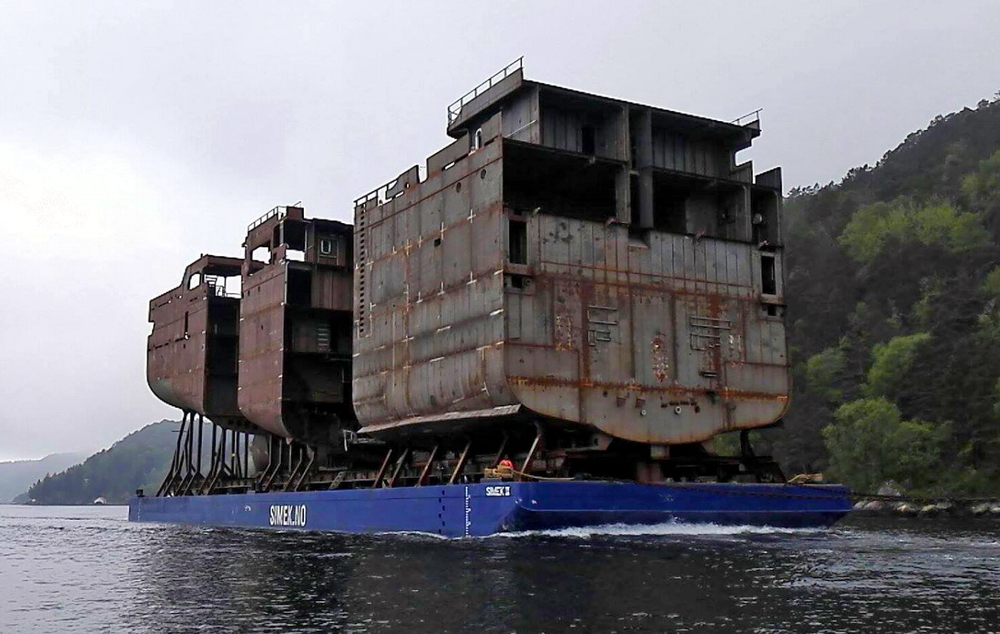 The picture is from an article in Poland@sea and shows the first three hull sections under tow. Read the article to learn more and answer the questions below.