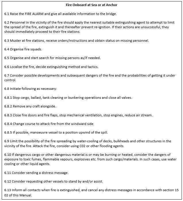 Figure 18 Procedure example: Fire Onboard at Sea or at Anchor