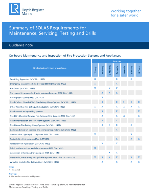 - Lloyds Register Marine (2016) Summary of SOLAS Requirements for Maintenance, Servicing, Testing and Drills.